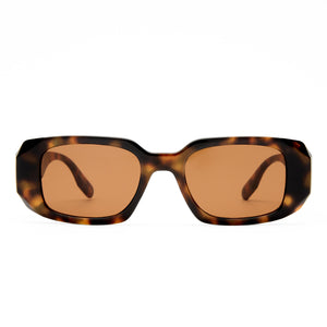 • Finished in a dark tort frame with brown mono lenses.