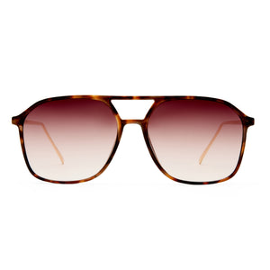 • Finished in a dark tort and gold frame with dark brown gradient lenses.