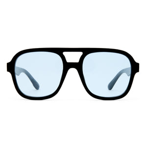 • Finished in a black frame with sky blue tint lenses.